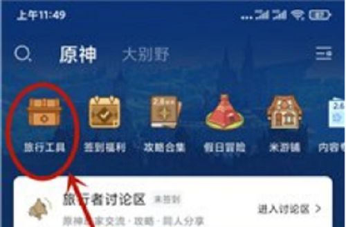 1、原神在原神的查充主界面点击旅行工具,